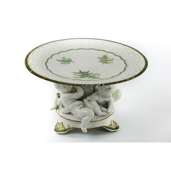 Alzata centrotavola con putti in porcellana bianca, Prima metà XX secolo