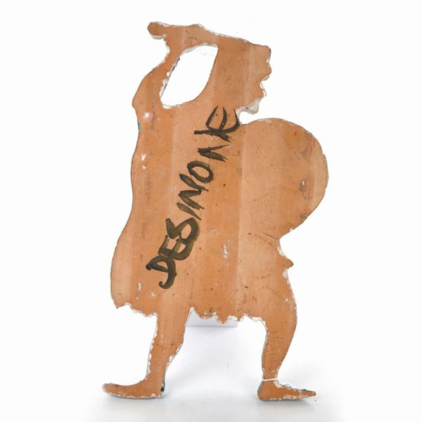 Coppia di guerrieri, scultura in forma in ceramica policroma, metà XX secolo