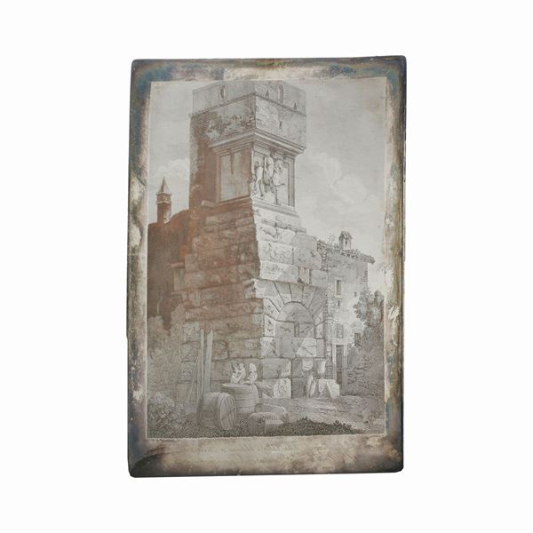 in rame acciaiato soggetti di monumenti romani. Eseguite da Nisi Cavalieri e da G. Cottafani a misure diverse.