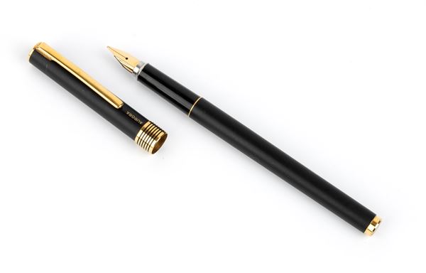 in cornice a lacca bianca ed oro coeva, firmato in basso a destra. Tela tagliata in più punti
