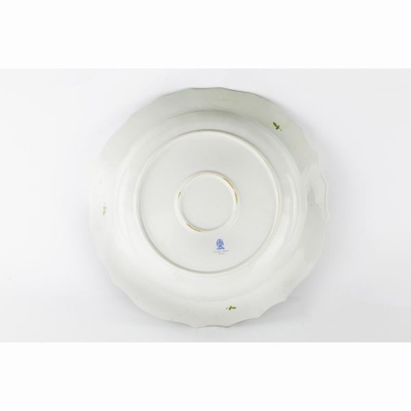 12 scodelle fonde ,24 scodelle piane ,24 piatti da dessert, 1 salsiera con cucchiaio , 2 assiet a foglia ,1 poggiomestolo,1 terrina con il coperchio ,1 zuppiera con presentatoio , 2 piatti da portata ovali, 2 piatti da portata tondi , 10 tazze da consommè con 11 piattini ed 1 tazza, 2 tazze da the con piatto proprio e 2 piatti da dessert en suite e 2 piccole portacrema con coperchio , 1 caffettiera rotta ed 1 lattiera pz.102