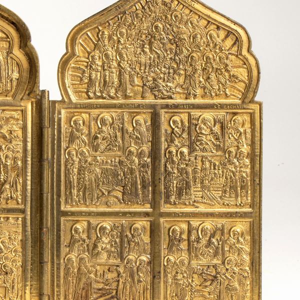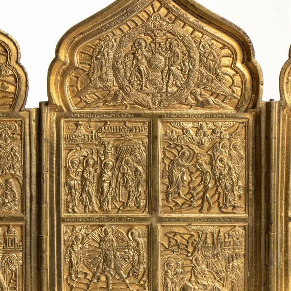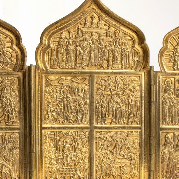 Polittico "Dodici grandi feste. Venerazioni delle icone della Madre di Dio di Tikhvin, di Vladimir, di Smolensk, del segno", Russia, fine XIX-inizi XX secolo