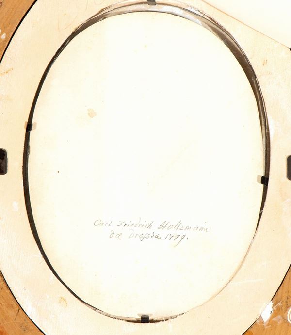a) Il disegno reca al verso iscrizione a matita: "CARL FRIEDRICH HOLLZMAN DA DRESDA 1779". Al verso della tavoletta un foglio con iscrizione dedicatoria in tedesco datata 29/01/1930. b) Il disegno reca al verso iscrizione a matita: "C. F. HOLLZMAN DA DRESDA 1779". Al verso della tavoletta un foglio con iscrizione dedicatoria in tedesco datata 29/01/1930.