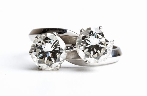 in oro bianco 18k, incastonato con coppia di diamanti. Punzonato "750 - 561 AL".