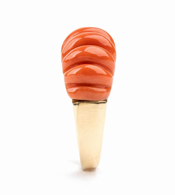 Anello in oro e corallo cerasuolo
