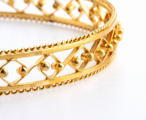 traforato con motivi geometrici. Dimensioni 6,8 x 6,8 cm. Peso 15,9 gr.