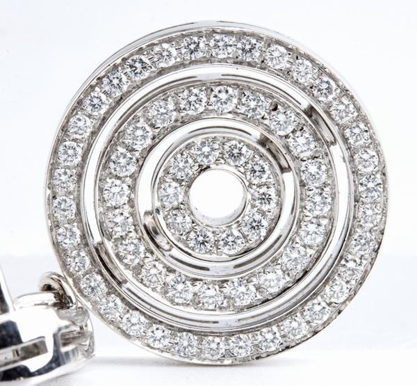 in oro bianco 18k, con motivi geometrici circolari a raffigurare una galassia, le cui stelle sono rappresentate da diamanti. Chiusura a moschettone. Firmato "BVLGARI".