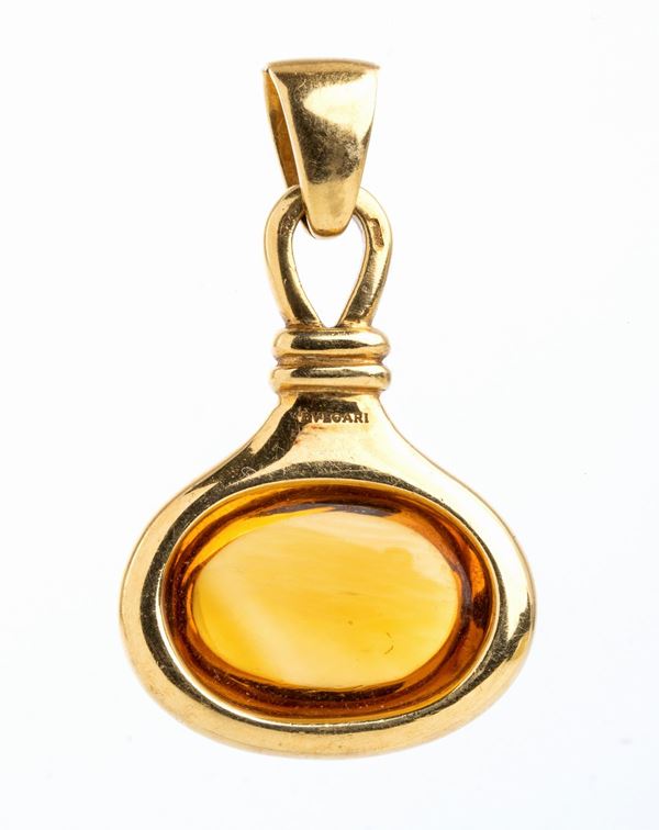 in oro giallo 18k, incastonato con cabochon di quarzo citrino. Firmato BVLGARI.