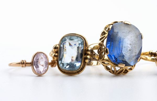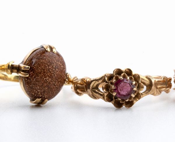 g) anello con cabochon in pasta vitrea. Punzonato con marchi francesi dell'oro. Misura IT 13 - Misura USA 6 1/2;