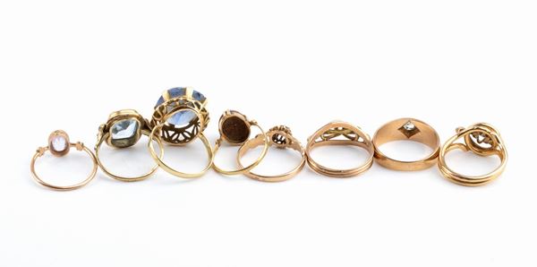 a) anello a fascia con n. 01 diamante di forma rotonda, taglio a rosa. Misura IT 16 - Misura USA 7 1/2;