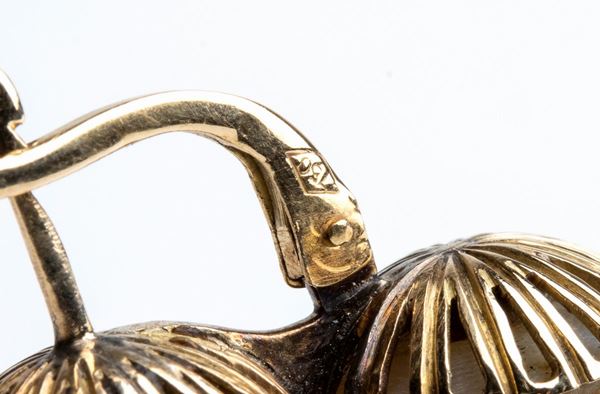 in oro giallo 18k, clip con perno, ciascuno con coppie di perle Mabè.