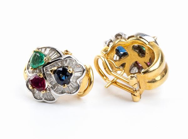 Orecchini in oro, diamanti, zaffiri, smeraldi e rubini