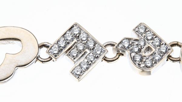 in oro bianco 18k, sul motivo della parola "AMORE", impreziositi con diamanti.