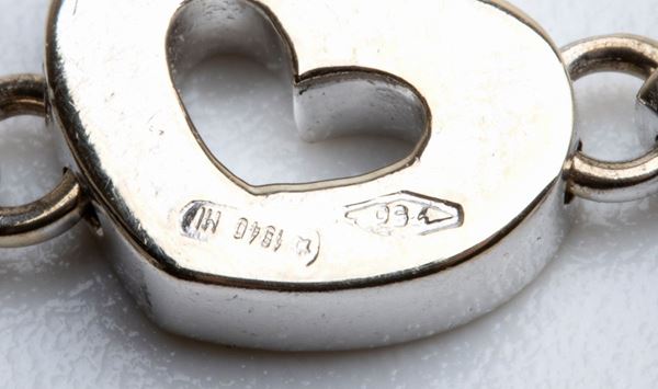 Punzonato "750 - 1940 MI - PASQUALE BRUNI". Lunghezza 8,2 cm. Peso 17,5 gr.