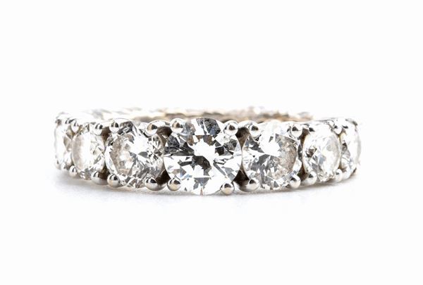 N. 17 diamanti di forma rotonda, taglio brillante, circa 4.00 ct; F-GH; VS-SI.