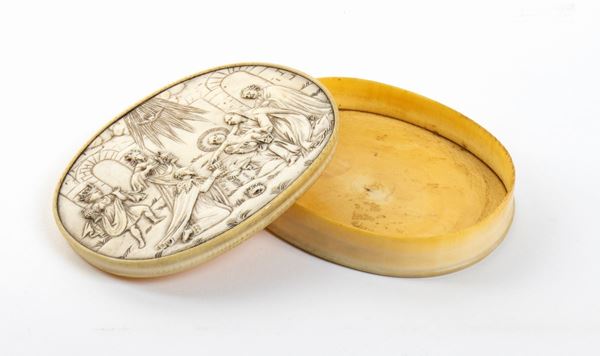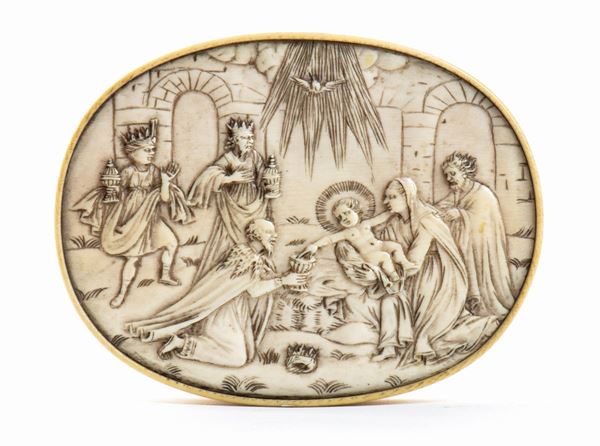 Scatola in avorio scolpito raffigurante L'Adorazione dei magi, XVIII-XIX secolo
