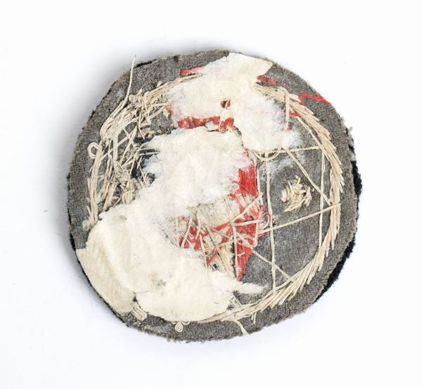 Patch tonda in cotone e canutiglia ricamata, con scudetto tricolore italiano affiancato ad un fascio littorio, ed una stella , per carica dirigenziale del CONI Comitato Olimpico Nazionale Italiano. Produzione Tanfani & Bertarelli