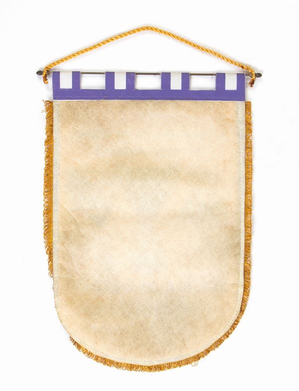 Celebrativo della XXIII Edizione della Coppa delle Coppe del 1982-83, Quarti di Finale, squadre Real Madrid - Inter, per l'inconto del 16/3/1983 al Santiago Bernabeu. In materiale sintetico, a stampa, frangia sintetica applicata, asta in metallo di supporto. In ottime condizioni