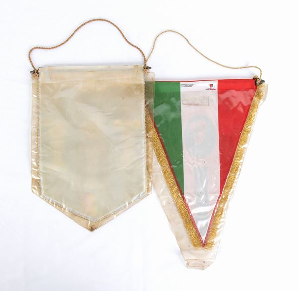Lotto di due gagliardetti squadre INTER e MILAN, in materiale sintetico, stampati, con aste ed in confezione originale. Ottime condizioni