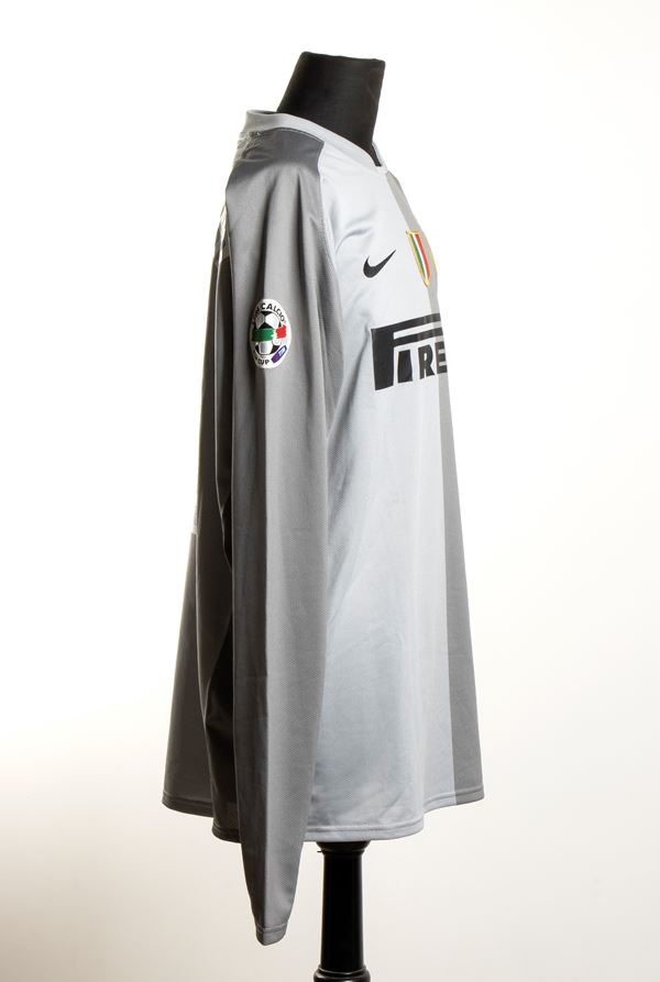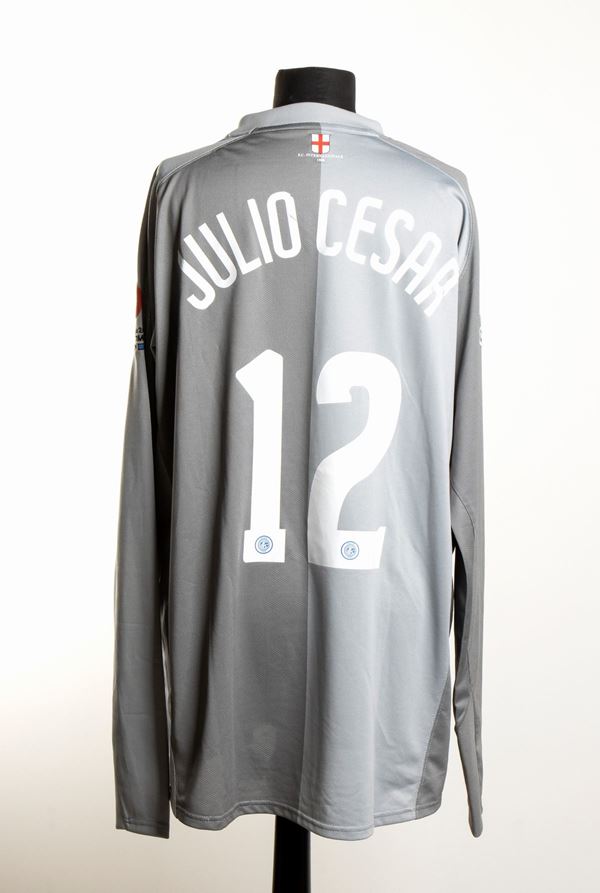 Maglia NIKE grigia a maniche lunghe numero 12 per il portiere Julio Cesar. Maglia INTER 1908 , con patch tonda con stella, applicata al petto a sinistra, scudetto Campione d'Italia al centro, logo PIRELLI nero. Toppa Lega Calcio al braccio destro, dicitura ricamata al braccio sinistro FINALE TIM CUP 9 Maggio 2007 con rettangoli della squadra giallorossa versus quella dei nerazzurri. Maglia da store. Ottime condizioni
