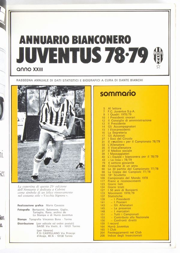 Annuario Bianconero per la stagione 1978-79, Juventus, Anno XXIII. A cura di Dante Bianchi - Tipografia Vincenzo Bona - Torino. Pagine 208 più copertina. Buone condizioni