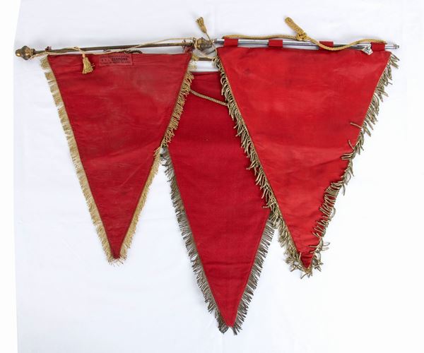 Lotto di tre gagliardetti periodo anni '60 della SAROM US RAVENNA , A.P. TURRIS 1944 (marcato S.lle Toritelli Firenze) ed U.S. ANCONITANA . In buone condizioni