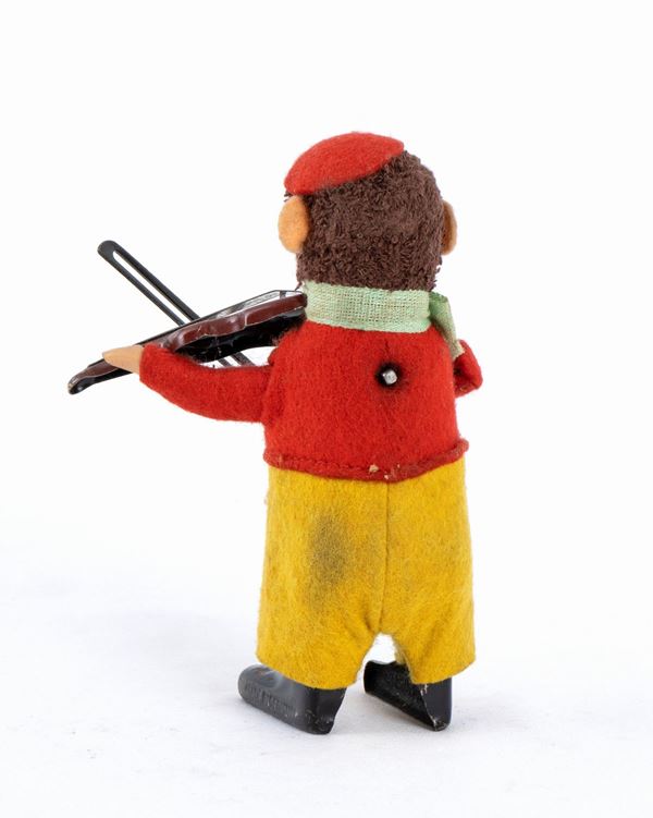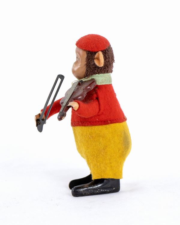 Personaggio della SCHUCO, Germany, scimmia suonatrice di violino, meccanismo con carica a molla. Anni '930. Marcato sui piedi In perfette condizioni, funzionante. Altezza circa cm.13