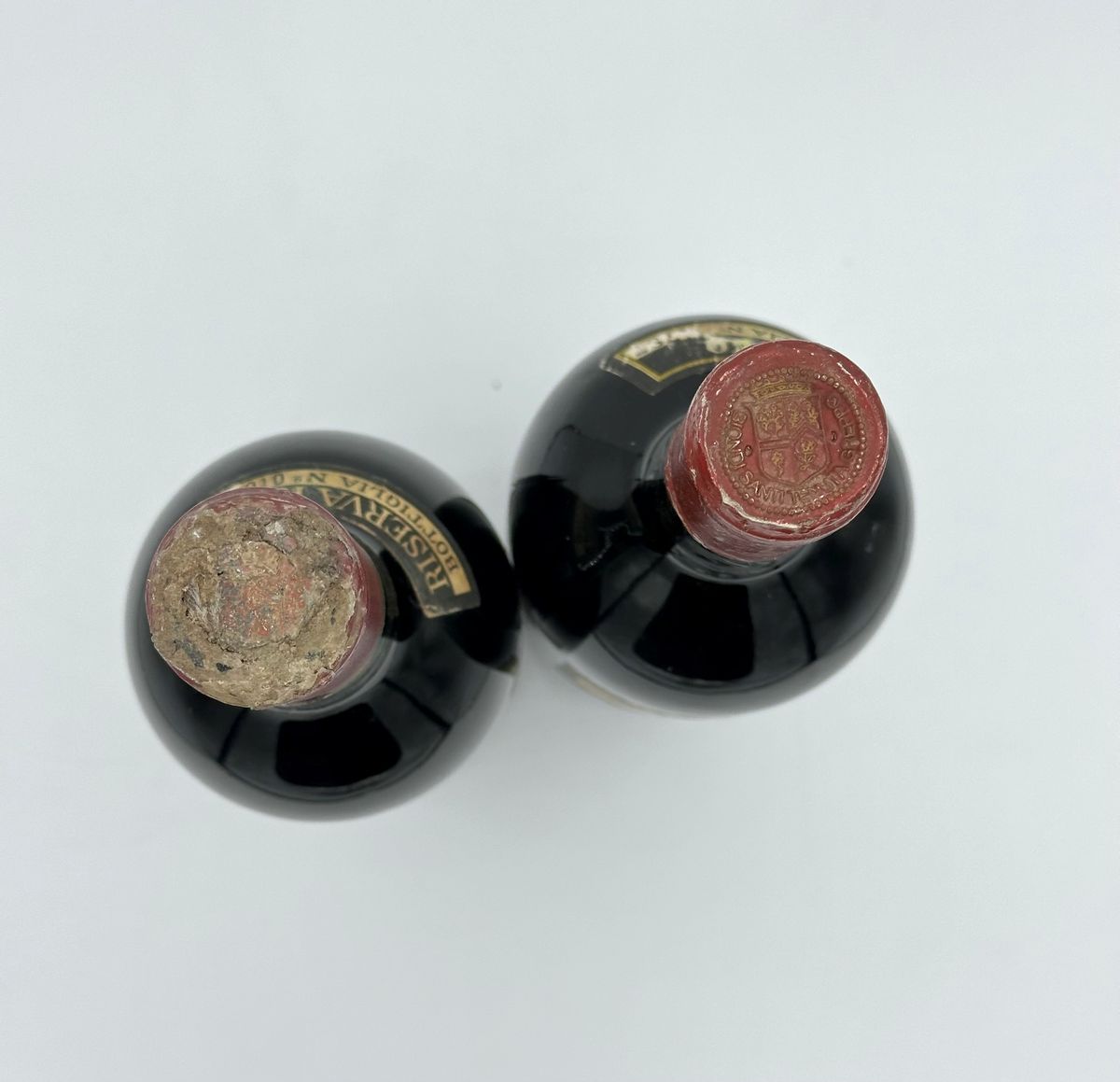 Condition report: etichetta e capsula con segni d'usura del tempo.