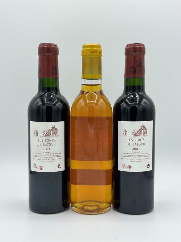 b) Francia, Les Forts de Latour - 2 mezze bottiglie (hbt), annata 2003.