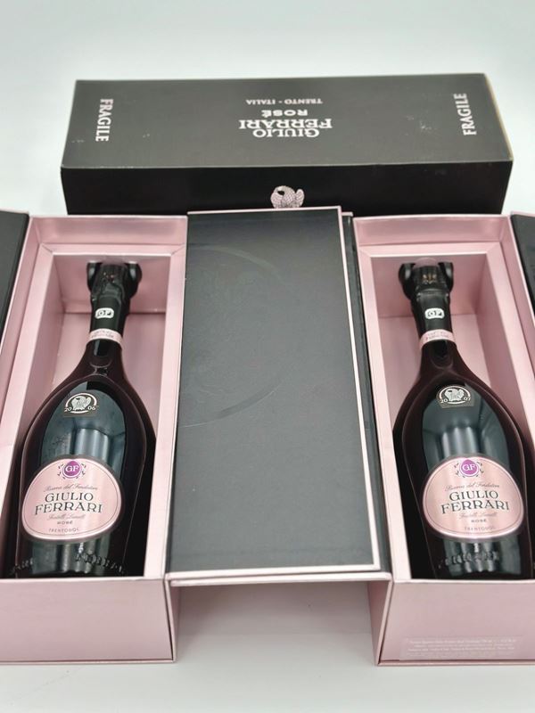 Trentino Alto Adige, Giulio Ferrari Rosè Trento DOC - 2 bottiglie (bt), annate 2006 e 2007. Livello: entro il collo (WN). Condition report: etichetta e capsula in perfette condizioni.