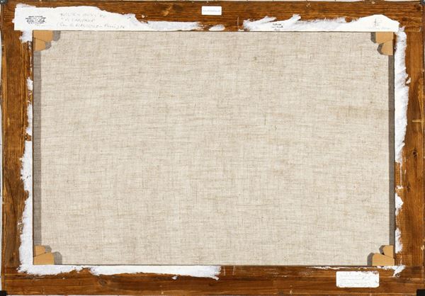 Firmato in basso a destra: Angeli; al retro timbro della galleria "La Sfinge" di Mauro Borgiani, Roma