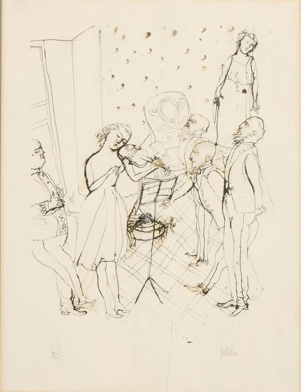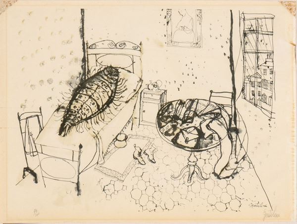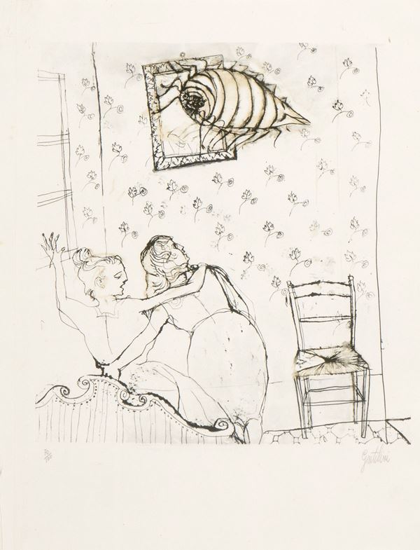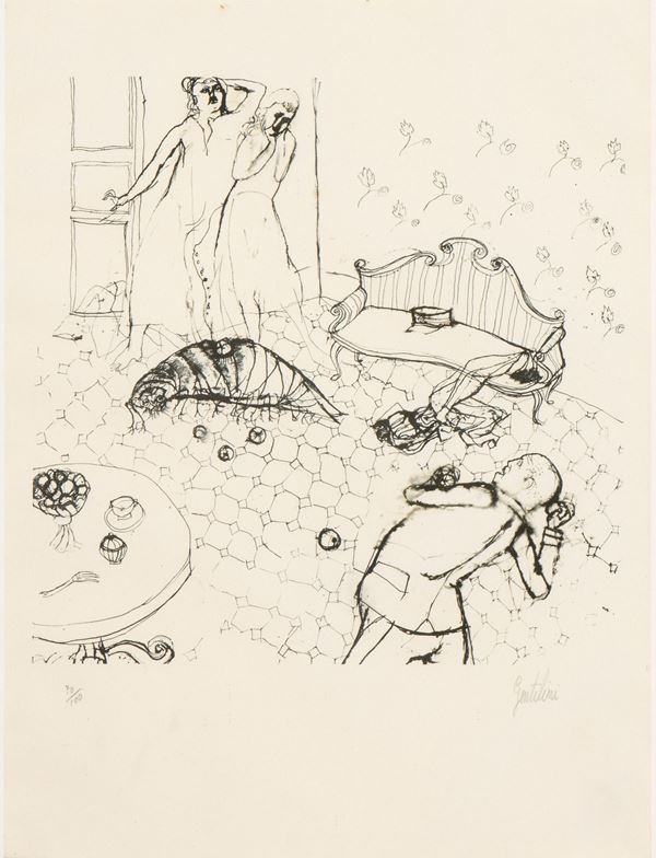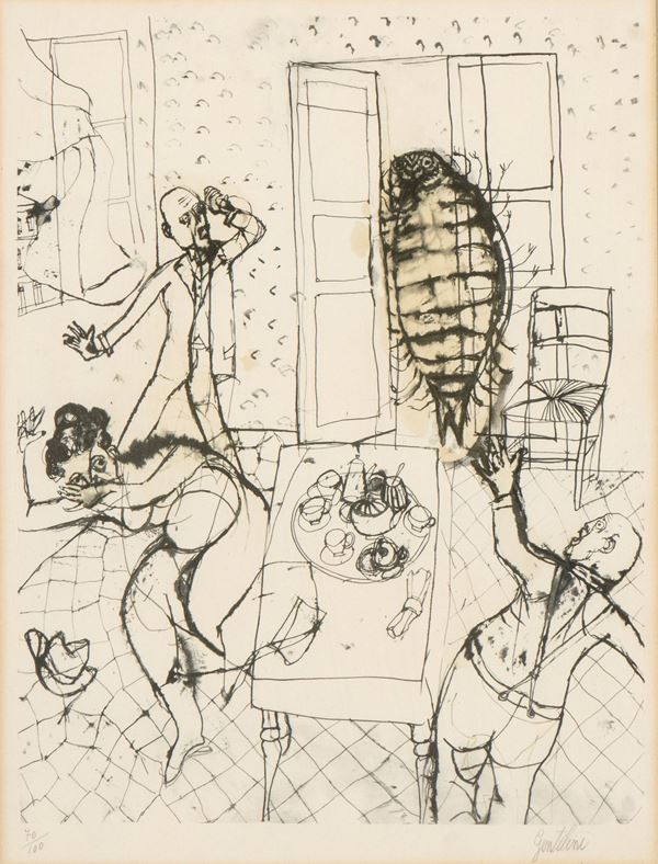 Scene tratte dalla Metamorfosi di Franz Kakfa; tiratura 70/100 in basso a sinistra e firma in basso a destra: Gentilini