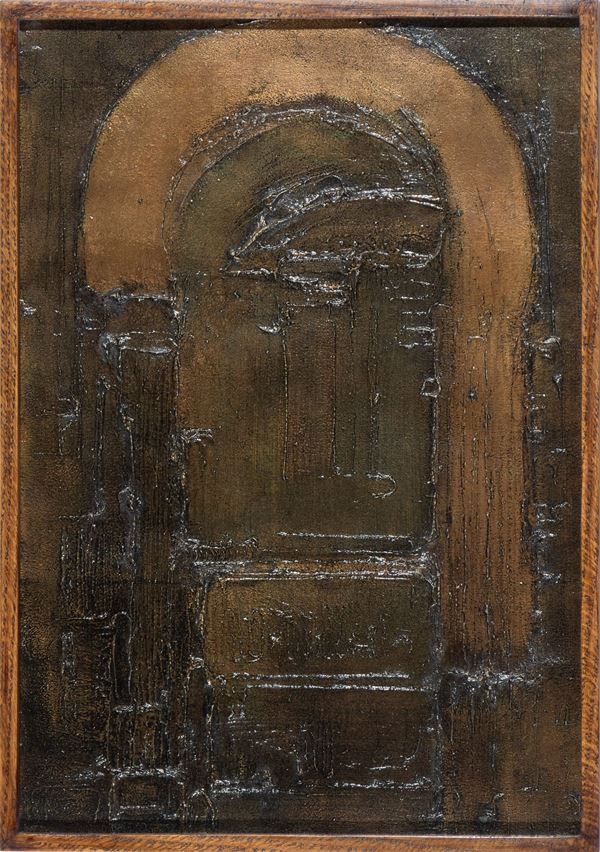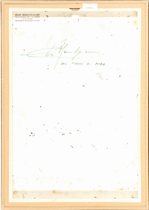 Firmato e datato al retro: Elio Marchegiani, "Dal trono di Mida" e timbro di Elio Marchegiani