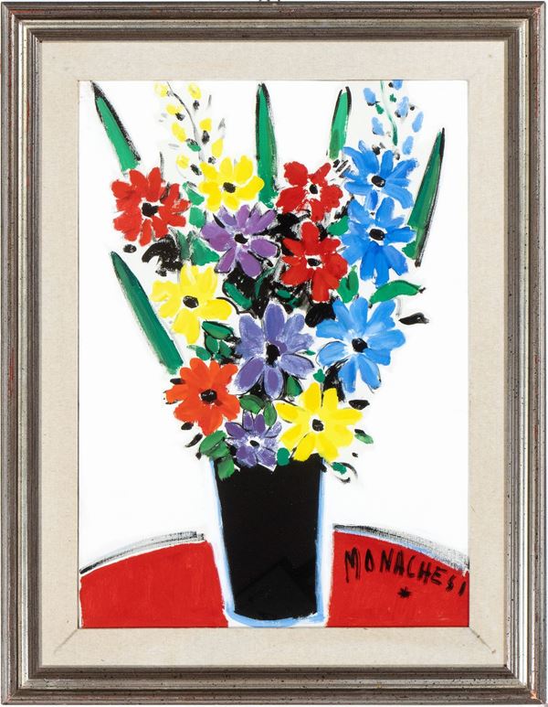 Firmato in basso a destra: Monachesi; al retro etichetta della Galleria Flavia di Roma