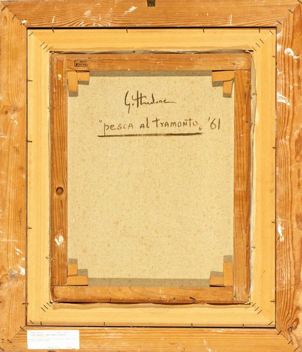 Firmato, datato e titolato al retro: G. Stradone, Pesca al tramonto, '61