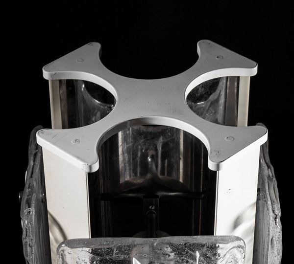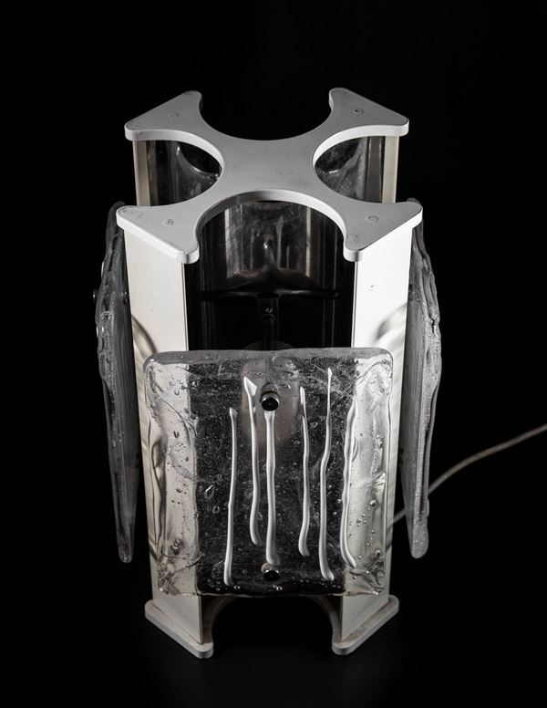 Una lampada vintage realizzata in vetro di Murano con un corpo in plastica al centro.