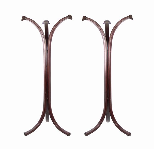 Bella coppia di attaccapanni realizzati in acciaio color Burgundy. Manifattura italiana degli anni '70 del XX secolo