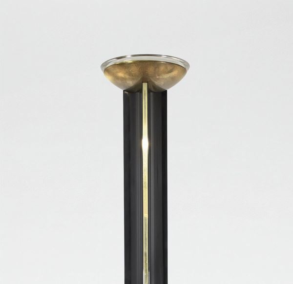 Diffusore di luce orientabile; dettagli in ottone e base in ghisa.