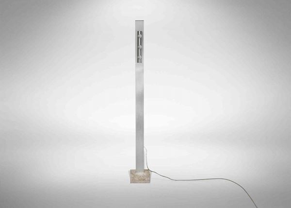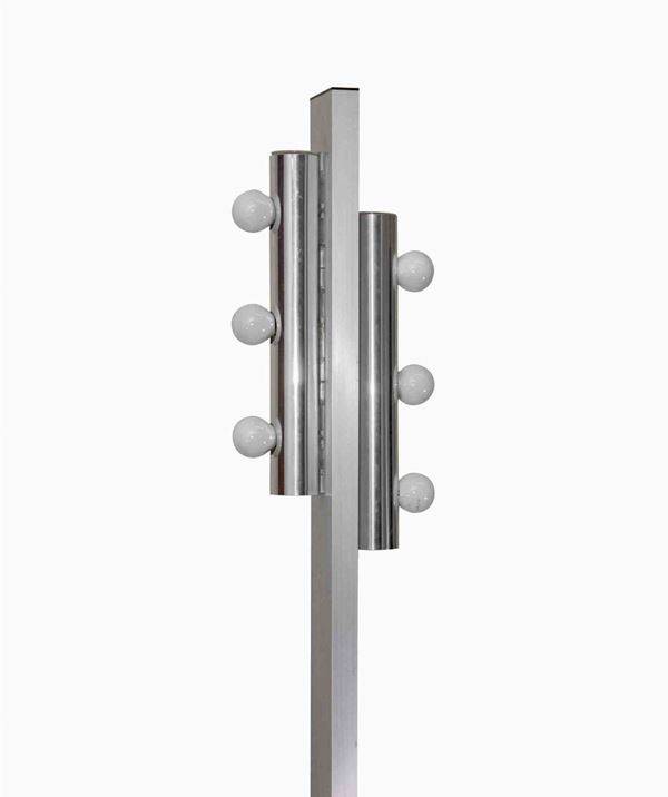 Un'unica lampada da terra cromata con base in marmo e sei lampade.