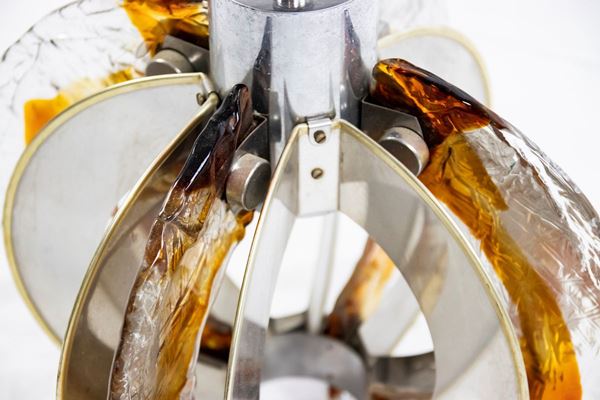 Lampadario vintage in vetro e acciaio di La Luce Roma, 1970s