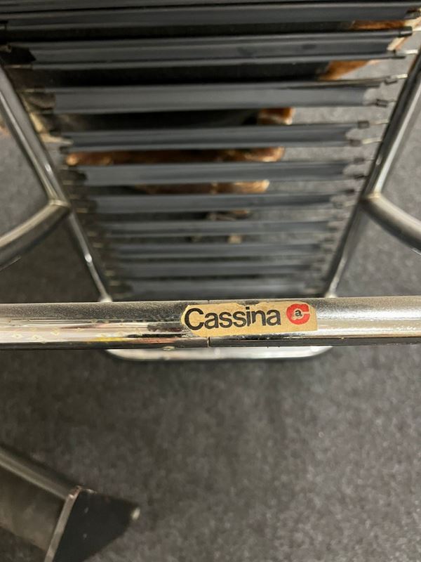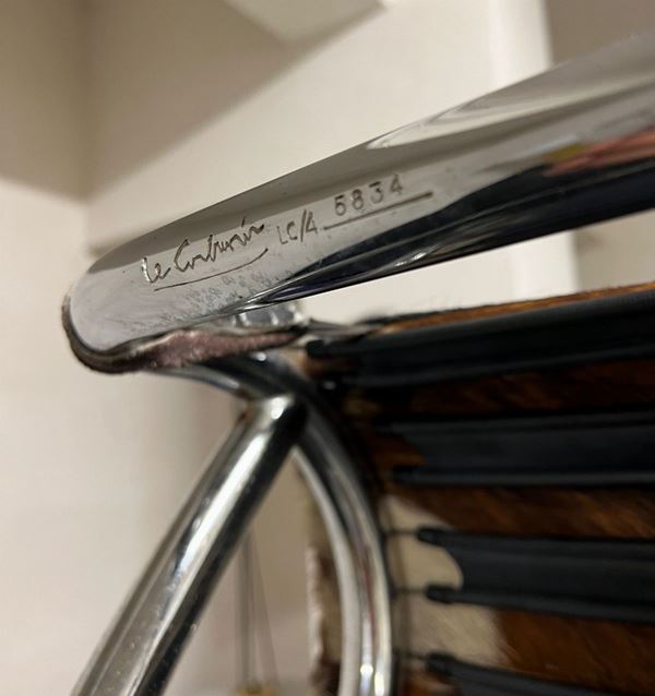 Etichetta originale Cassina, firma incisa di Le Corbusier e seriale.
