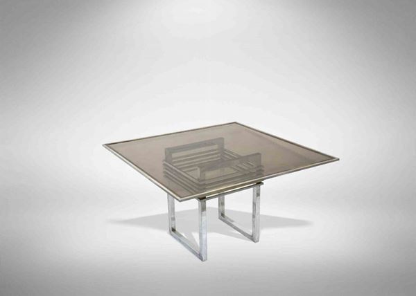 Il tavolo vintage in ottone e cromato è un oggetto di design originale realizzato da Romeo Rega per Metalarte negli anni Settanta.