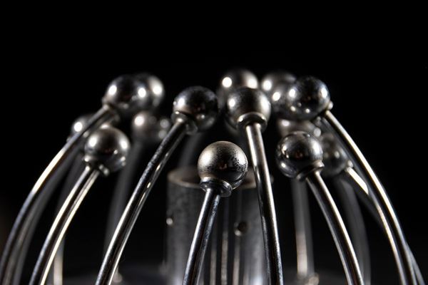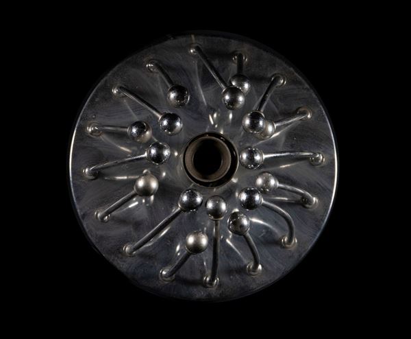 Lampada a pistillo dallo stile e design vincenti, evidenti nel corpo e nei bracci cromati che circondano la lampadina centrale.