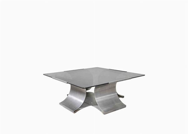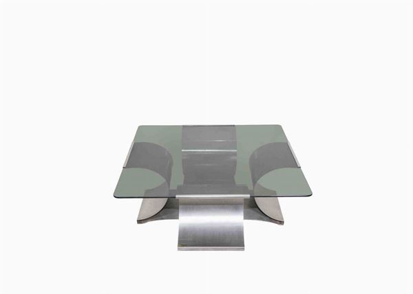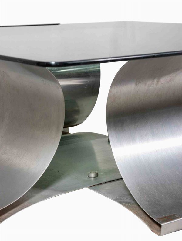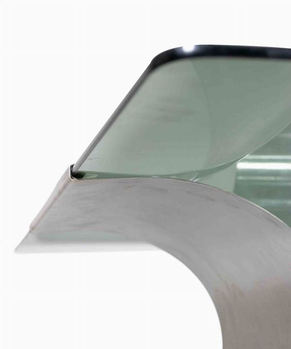 Tavolino sagomato in acciaio e vetro per Kappa, anni Settanta.