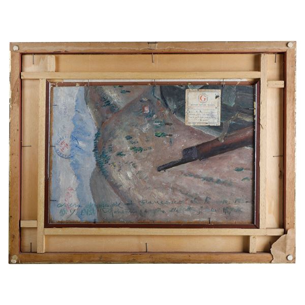 con al retro scorcio di paesaggio con dedica in cornice, firmato e datato al fronte in basso a destra.