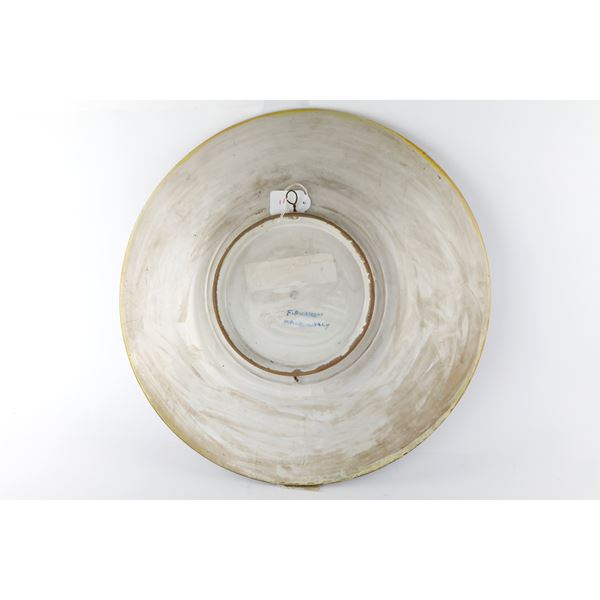 larga tesa con girali e teste di amorini nel fondo piatto " Adone che dorme con Diana e coppia di Eroti ", manifattura Rubboli Gualdo Tadino