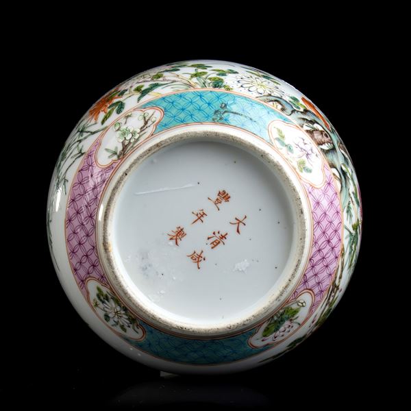 BACILE IN PORCELLANA CON DECORO A SMALTI POLICROMI