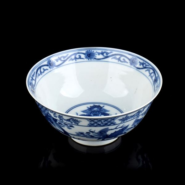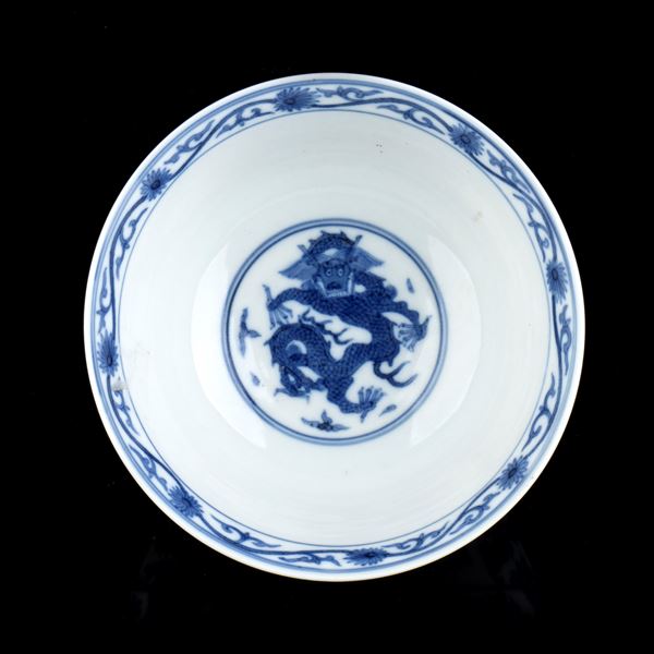 CIOTOLA IN PORCELLANA 'BIANCO E BLU' CON DECORO DI DRAGHI