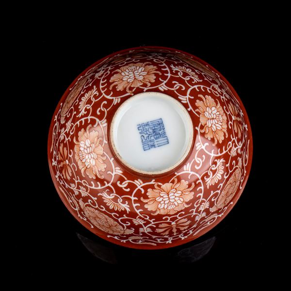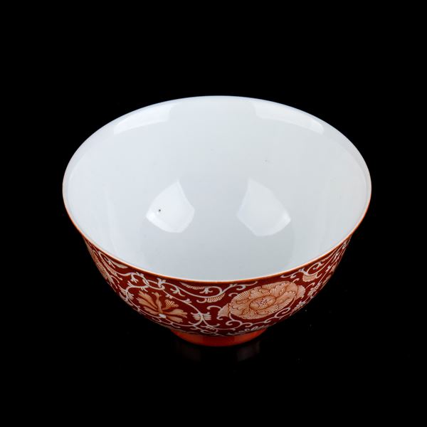 CIOTOLA IN PORCELLANA CON DECORO A SMALTO ROSSO