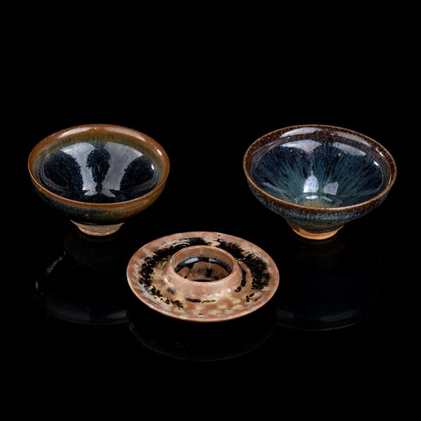 DUE CIOTOLE IN CERAMICA SMALTATA, UNA CON BASE